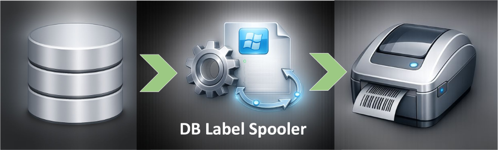 Der DB Label Spooler bildet die Daten für ein Etikett und sendet die Daten an den Etikettendrucker.